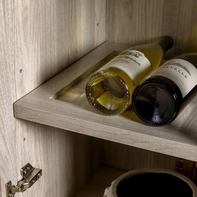 Store your best drinks in style with Saracina Home’s Boho Modern Tall Storage Wood Cabinet. Utilize the three adjustable shelves for all your storage needs and take advantage of the single, reversible grooved shelf. Flip it over to hold your favorite bottles and when the bottles run dry, flip the shelf over for another flat storage surface. Your next dinner party will be a hit! But it’s not limited to a bar cabinet. Consider using this unit as linen storage, as a vertical china buffet, or as chic home office storage.