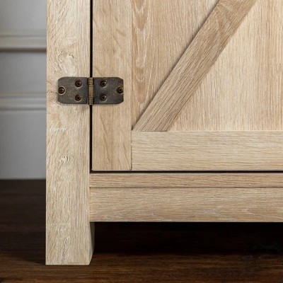 The weather outside doesn’t seem so frightful when you can warm up next to Saracina Home’s Clarabelle Double Door Rustic Farmhouse 58” TV Stand with Electric Fireplace. Settle in for a cozy night at home with your new TV console. Simply open the barn door cabinets and grab your favorite movie off one of the adjustable shelves and flip the switches to fire up the LED flames and electric heater. Antiqued metal accents lend a farmhouse style that makes you feel right at home. And when the weather warms up, use the dual switch to only turn on the LED flames for a cozy ambiance all year around.