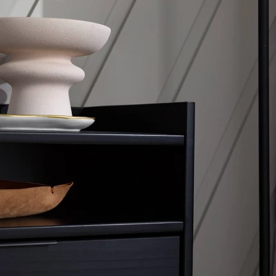 Stylish, luxurious, and practical, Saracina Home’s Mid-Century Modern Solid Wood 2-Drawer Storage Nightstand gives you a little bit of everything. Raised, tapered legs give this piece its nostalgic charm, while two cubbies and two drawers give it its contemporary convenience. A raised lip around the top surface prevents your belongings from getting pushed off when you sleepily reach for your water bottle in the middle of the night. Constructed with solid pine wood that is responsibly sourced from renewable forests, this end table adds one more sustainable purchase to your bedroom or living room. Pair this piece with the matching Mel dressers for a complete set.