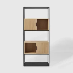 75″Â Modern Reeded Door Storage Bookshelf Coastal Oak/Black – Saracina Home